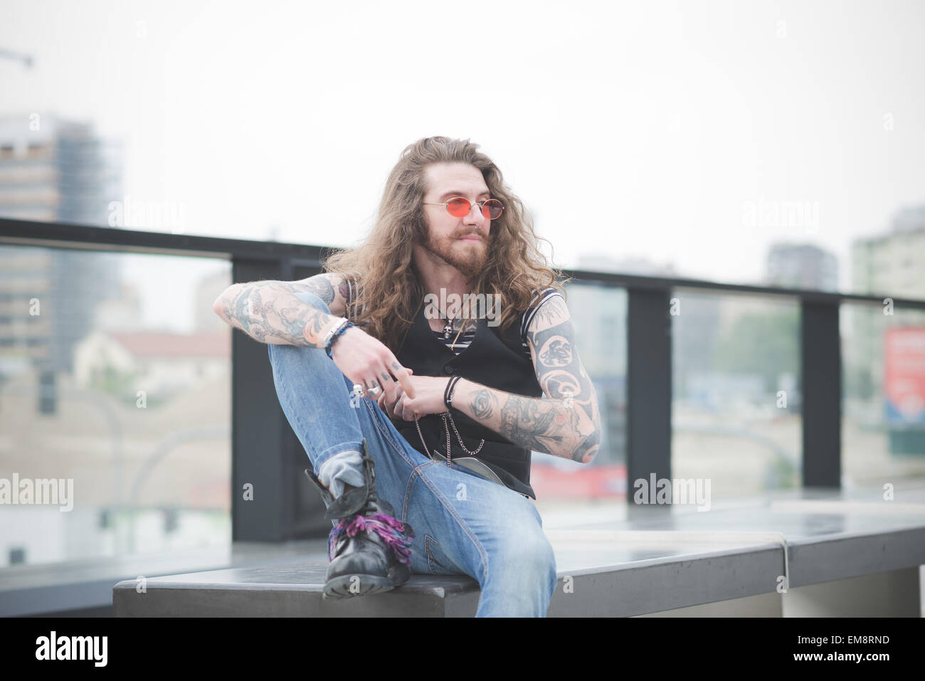Long Hair Man With Tattoo Hi Res Stock Photography And Images Alamy